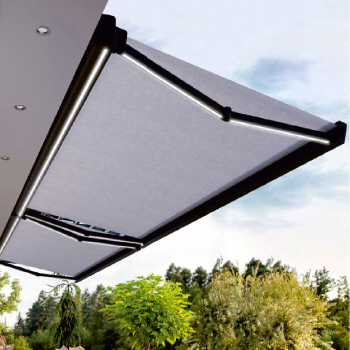 One of the major innovations of the Aland is its integrated LED lighting system, available in both the folding arms and the cassette profile.