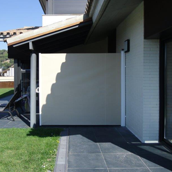The Porto Side is a lateral awning system with an internal spring and automatic roll-up, ideal for creating small enclosures and wind-protected areas, especially on terraces, balconies, or the sides of pergolas. Compact, functional, and easy to use, its fabric retracts automatically into a sleek aluminium cassette.