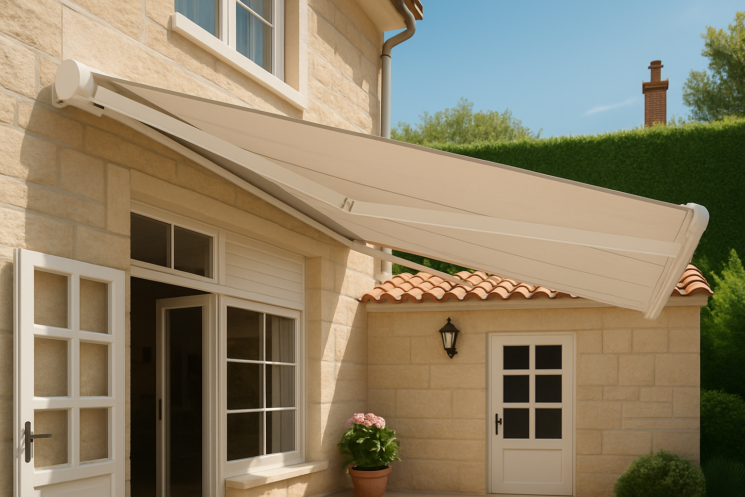 Inclinaison réglable de la toile ouverte entre 5° et 69°, permettant de s’adapter à différentes orientations solaires