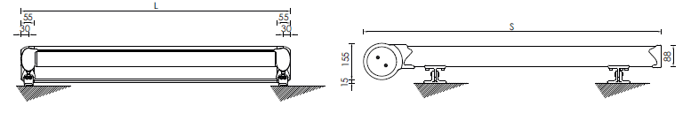 Peut être monté au-dessus ou suspendu en dessous d’une structure, avec les mêmes supports.