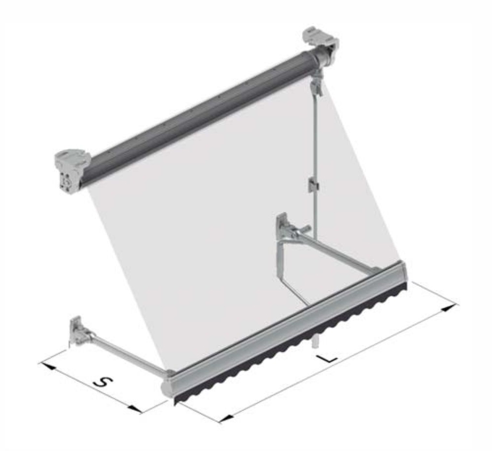 Si un bras de 500 mm est utilisé, le store doit être demandé avec 500 mm supplémentaires de chute, assurant ainsi l’extension complète du bras sans que l’axe soit visible.