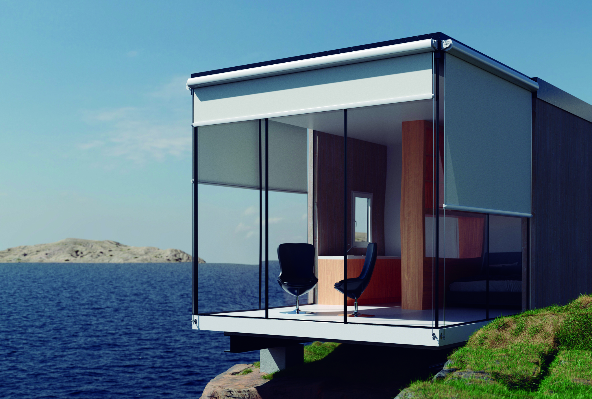Systèmes de store plat conçus spécifiquement pour les fenêtres et grandes baies vitrées, mais également adaptables à tout type de façade et de fermeture verticale d’ouvertures extérieures.