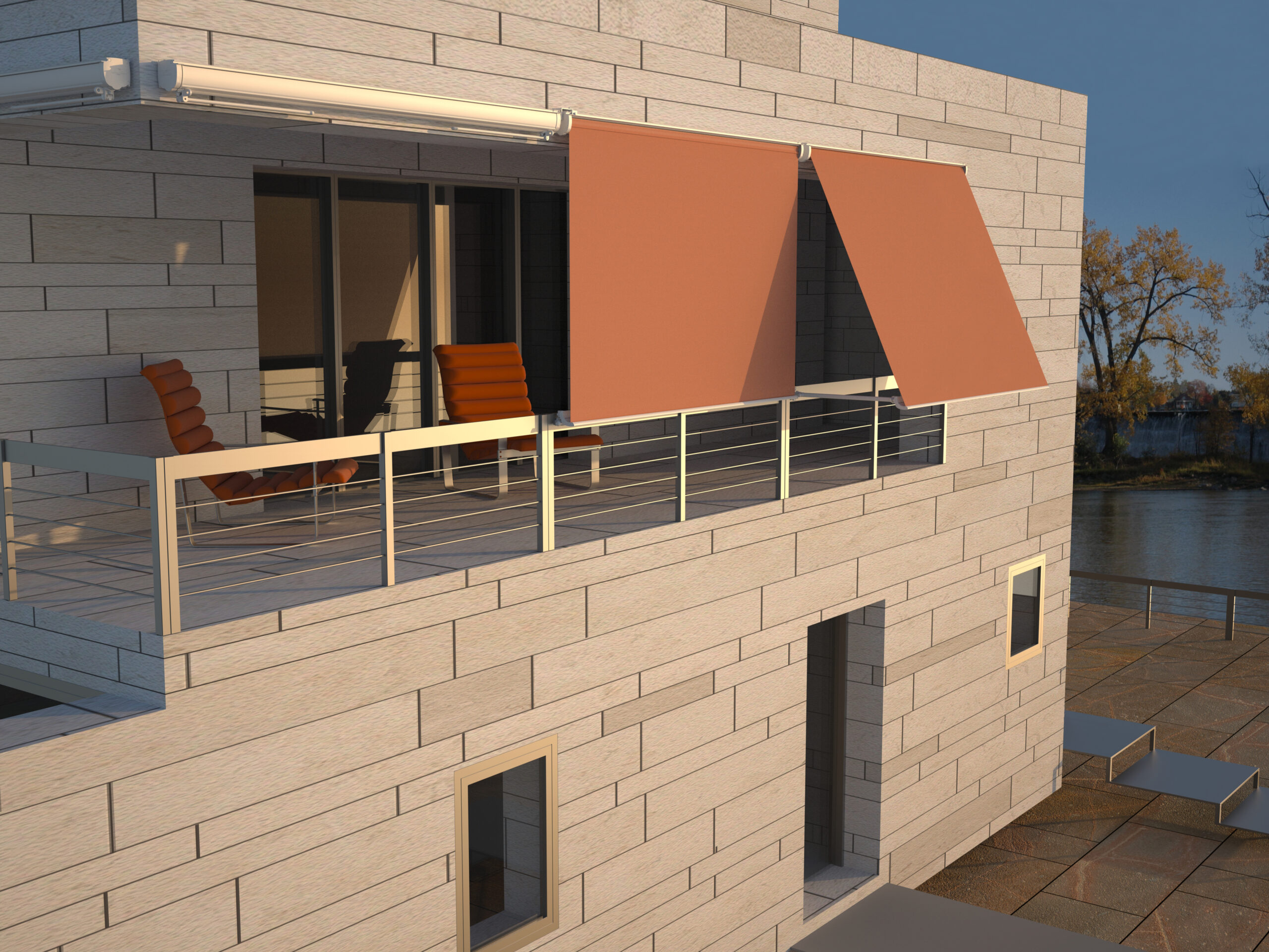 Sistemas de toldo plano desenvolvidos especificamente para janelas e grandes vãos envidraçados, mas também adaptáveis a todos os tipos de fachadas e fechamentos verticais de aberturas exteriores.