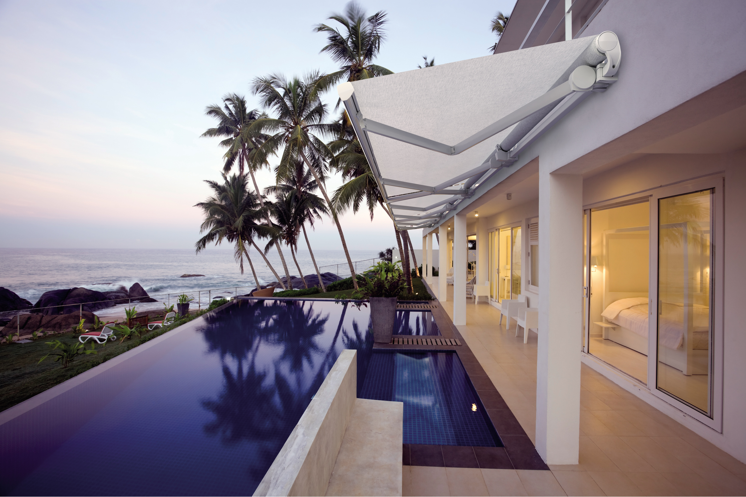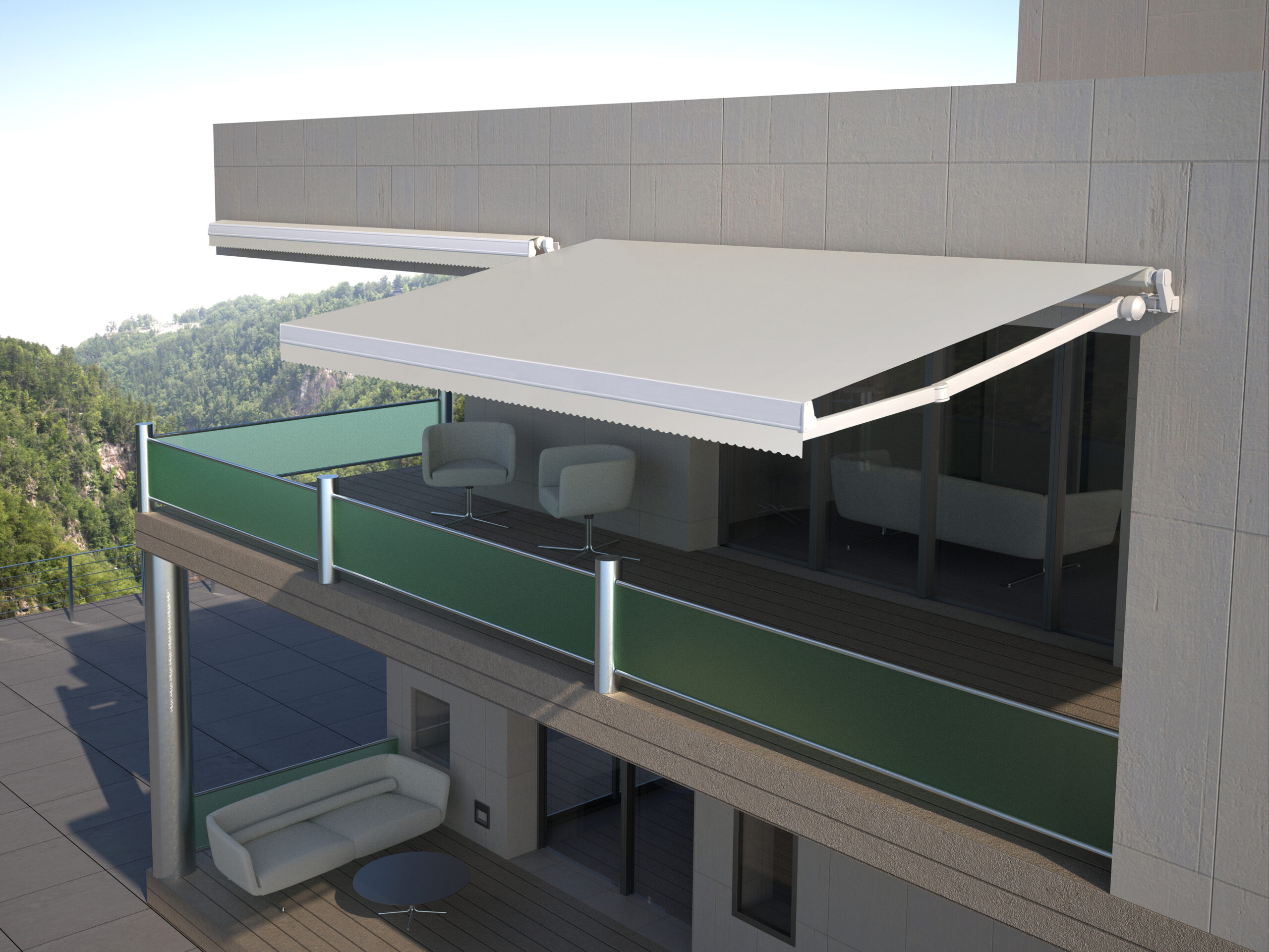Es el modelo más pequeño, pensado para cubrir pequeñas superficies con un modelo de brazo articulado robusto como es el monoblock. Se puede confeccionar en tejidos Acrílico o Microperforados (Soltis o Sunworker). Ofrece la opción de la instalación de semicofre hasta los 2500 mm de salida y de motorizaciones.